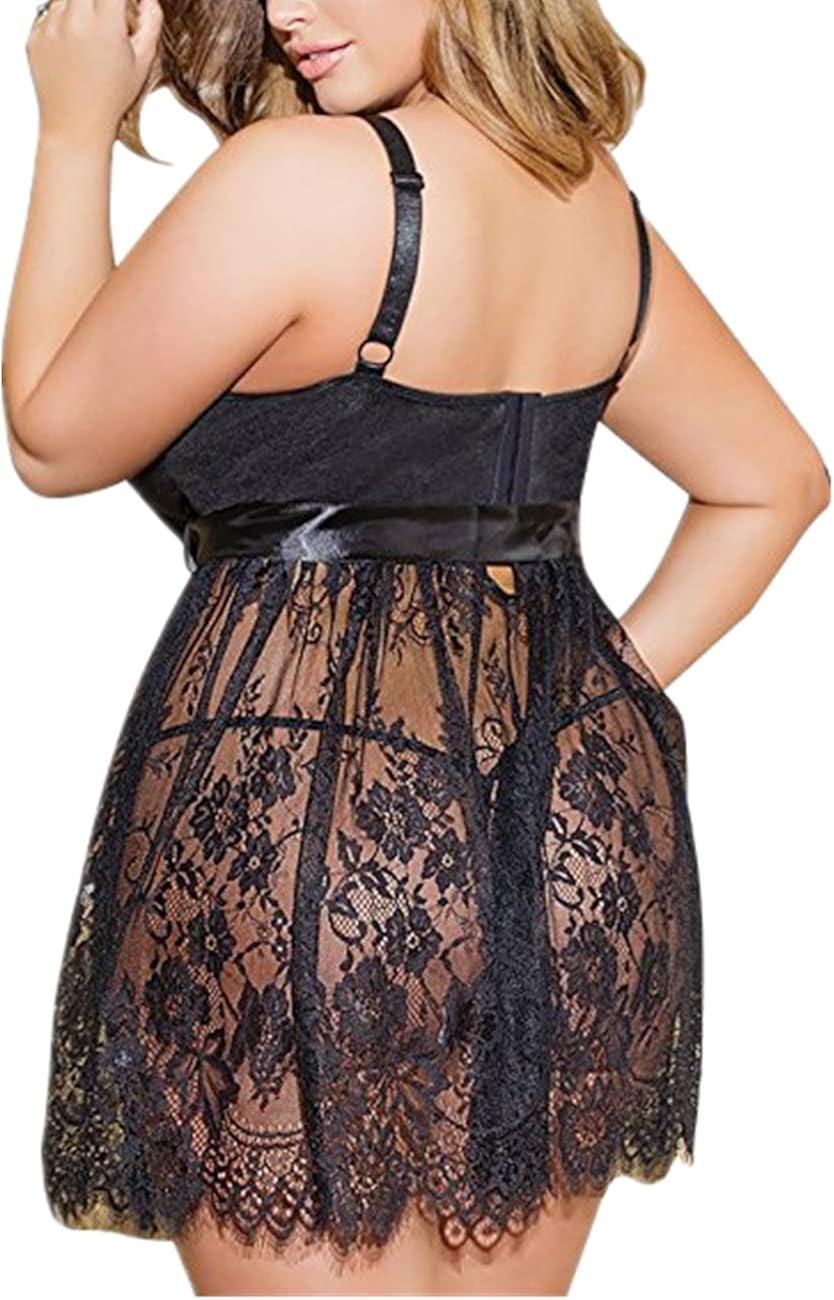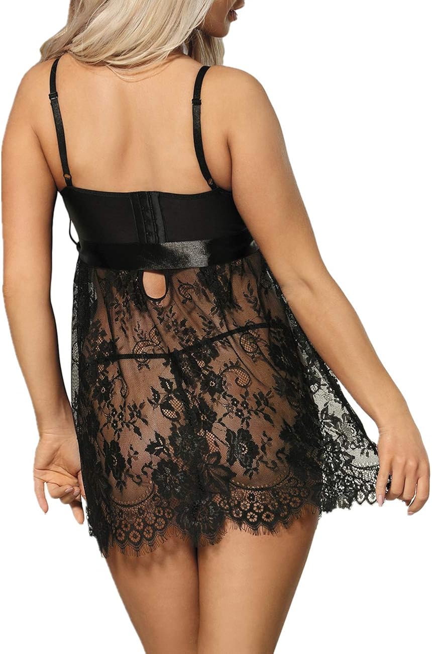 ohyeahlady: Babydoll Spitzen Nachtwäsche schwarz, XS-6XL