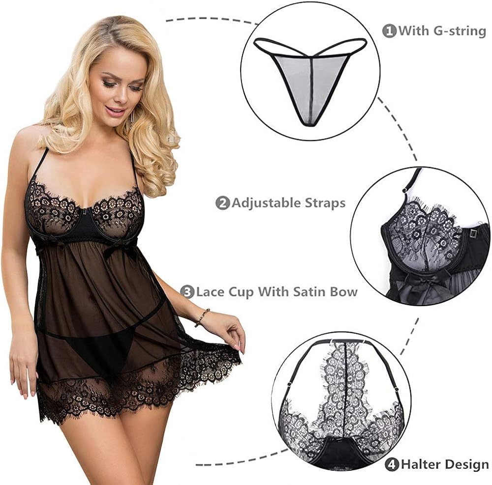 ohyeahlady: Babydoll Spitzen Nachtwäsche schwarz, XS-6XL