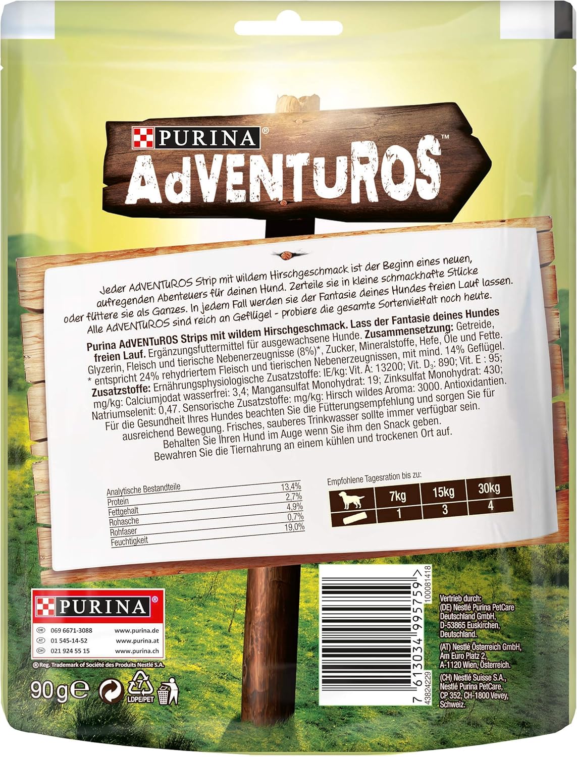 PURINA AdVENTuROS Strips Hundeleckerlies Hirsch 6er Pack (6 x 90 g)