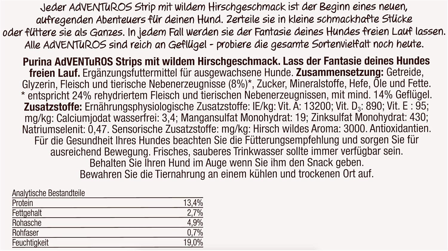 Technische Daten PURINA AdVENTuROS Strips Hirsch